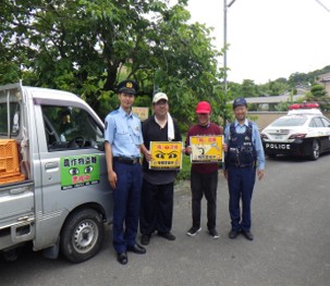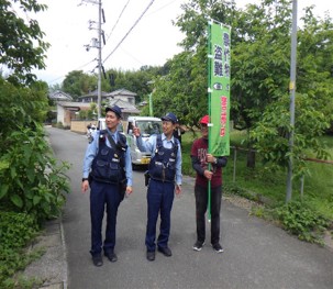 梅の産地として知られる城陽市青谷地区では、観光客が収穫直前の梅がもぎ取っていくという問題を抱えていました。そこで、城陽警察署、JA京都やましろ、城陽市農政課と広報啓発ポスターを制作し、合同パトロールを実施しました。