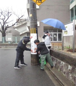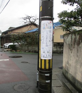 木幡小学校と木幡交番で通学路における危険個所について情報共有を実施し、オリジナル電柱幕を作成しました。電柱幕のデザインは木幡小学校児童が交通安全に関する標語とイラストを募集し、選出されました。