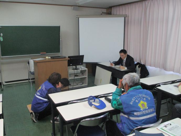 登下校中の子ども見守り活動について、子どもの目線や特性を理解して、自分の安全も守る要領の講習を行いました。