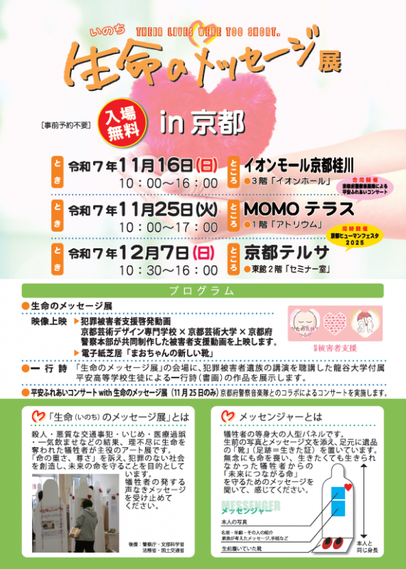 〇京都府警察音楽隊とカラーガード隊による「平安ふれあいコンサートwith生命のメッセージ展」も同時開催(午後3時~)