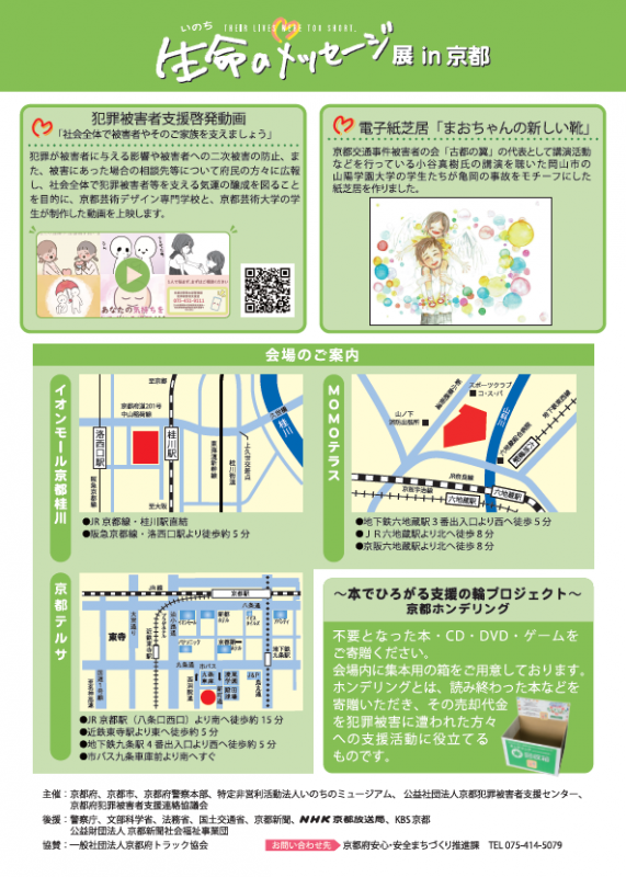 京都府、京都市、京都府警察本部、特定非営利活動法人いのちのミュージアム、公益社団法人京都犯罪被害者支援センター、京都府犯罪被害者支援連絡協議会