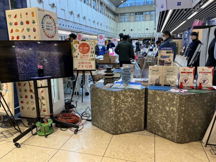 万博関連スタンプ4種※の押印や京都ゾーンフォトパネルでの写真撮影などの体験、京都ゾーンで使用したキモノタイル・ユニフォームや京都ゾーンの展示ダイジェスト映像等の展示、京都ゾーン関係者との交流により、府内各地においても万博会場の雰囲気を体感し、万博の感動をもう一度味わっていただくため、市町村等と連携し、府内各地で開催されるイベントに出展しています。