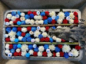 万博カラーの花手水(はなちょうず)「脈々手水」を実施した長岡京市の柳谷観音楊谷寺(やなぎだにかんのんようこくじ)