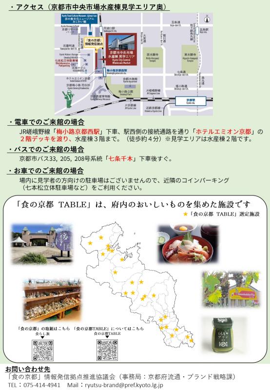 京都市中央卸売市場第一市場水産棟2階見学エリア内「食の京都」情報発信拠点(京都市下京区朱雀分木町80)