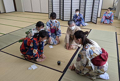 再開してからは、工夫をしながら、お点前や茶道にまつわる知識を学びつつ、和気藹々とお稽古をしています。× -