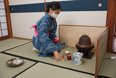 平素は京都外国語大学の茶室でお点前などを練習させていただいてます。