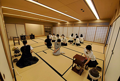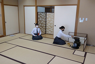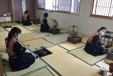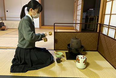 茶道部も歴史が長く、九条家ゆかりの茶室もあり、例年は国際交流や京都府や地域の催事でお茶会をさせていただくなど積極的に活動しています。