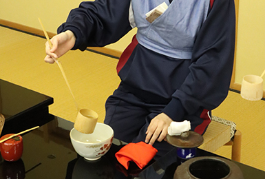 茶道部の流派は、千利休の弟弟子にあたる剣仲紹智を祖とする藪内流です。