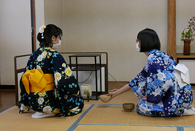 ここ2年は様々な活動が制限されていますが、毎年、文化祭やオープンキャンパスでは着物を着てお茶会を行っています。× -