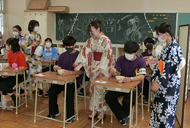 今年は新たな取り組みとして、浴衣の着付け・水引工芸などの文化体験や、校内で先生や生徒対象のミニお茶会を実施し、より日本文化に親しむことができています。× -
