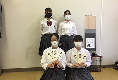 2 学期早々の活動停止や文化祭をはじめとする行事の変更などで、思うような活動が出来ない日々ですが、皆さんと和やかに楽しくお茶をいただける日を思いながら、本校の校訓「自学・自律・自鍛」を心がけてお稽古に励んでいます。× -