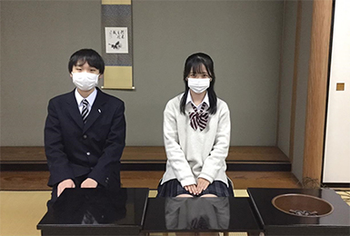 今年度は1年生2名、2年生1名、3年生2名が茶道部に登録し、週に一度裏千家の茶道講師に来ていただき、点前稽古や客の心得などのご指導を受けています。