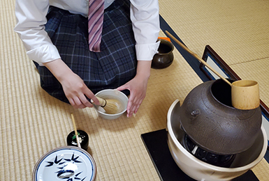 茶道部は、週2 回、校内の和室でお稽古をしています。