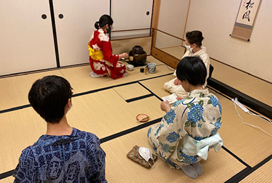 さらに、先生への感謝のお茶会や留学生が来た際にもお茶会を実施しています。× -