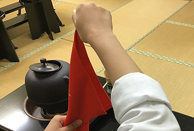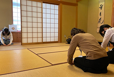 外部講師の細やかな指導のもと、裏千家茶道初級の取得を目指して日々お稽古に励んでいます。