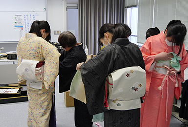 例年は週末等を使って、着物の着付け・和菓子作り等を行います。