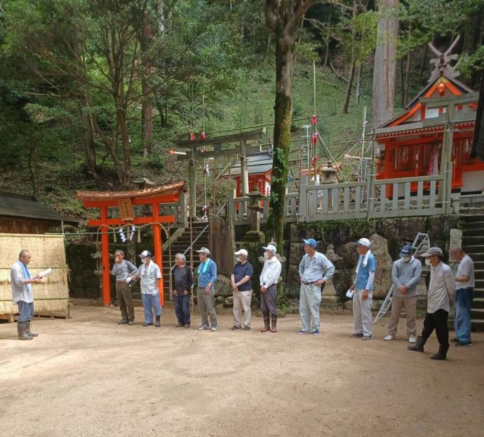 【8月初旬】現地案内・地域での作業(地域の方との神社周辺の清掃・伝統行事の準備補助等)