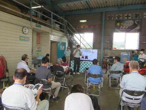 えびいも栽培の省力化に向け、トラクタによる土寄作業の省力化についての検討会を開催しました。