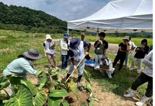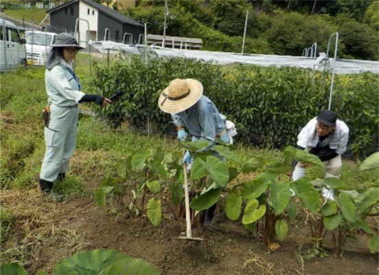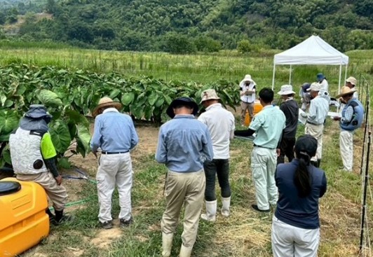 えびいも生産者の栽培技術習得のため、えびいもの形を左右する重要な作業となる3回目土入れ講習会を開催しました。