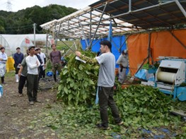 農業分野での人材確保に向け、農業に興味がある移住者などを対象に、紫ずきんの作業体験を通じ、農作業等への関心を高めるための研修会を開催しました。