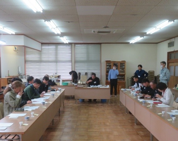 両丹茶品評会が開催され、今年も生産者の技術力の集大成ともいえる高品質な手摘み玉露18点、機械摘み玉露8点、てん24点が出品されました。