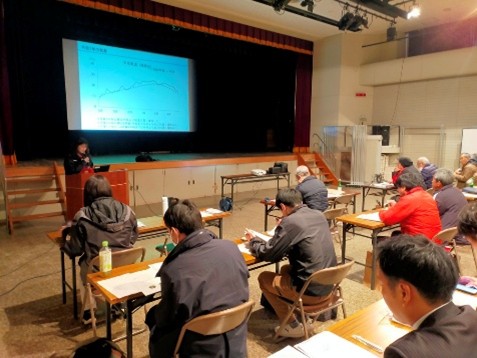 水稲栽培を経営の柱とする集落営農組織を対象に土づくりや緑肥活用等の講習を行いました。営農組織間で栽培上の課題や工夫についての情報が共有され、経営改善への意欲向上が感じられました。
