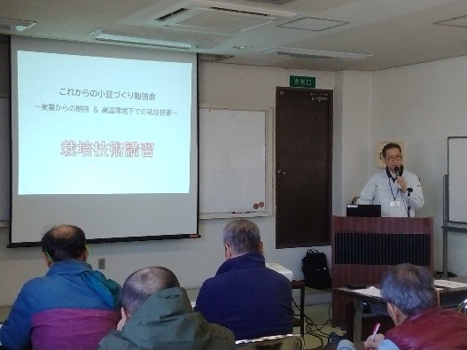 小豆の需給状況の変化や高温乾燥への対応技術を学び、生産者の栽培意欲向上につなげるため、実需者の声も交えた勉強会を開催しました。
