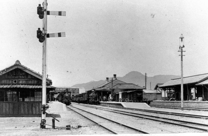 福知山は古くより由良川水運や各地への街道が交差する交通の要衝として栄え、明治時代に鉄道が敷かれると京都・大阪・豊岡・宮津・舞鶴への結節点として発展。(写真は明治40年頃の福知山駅)