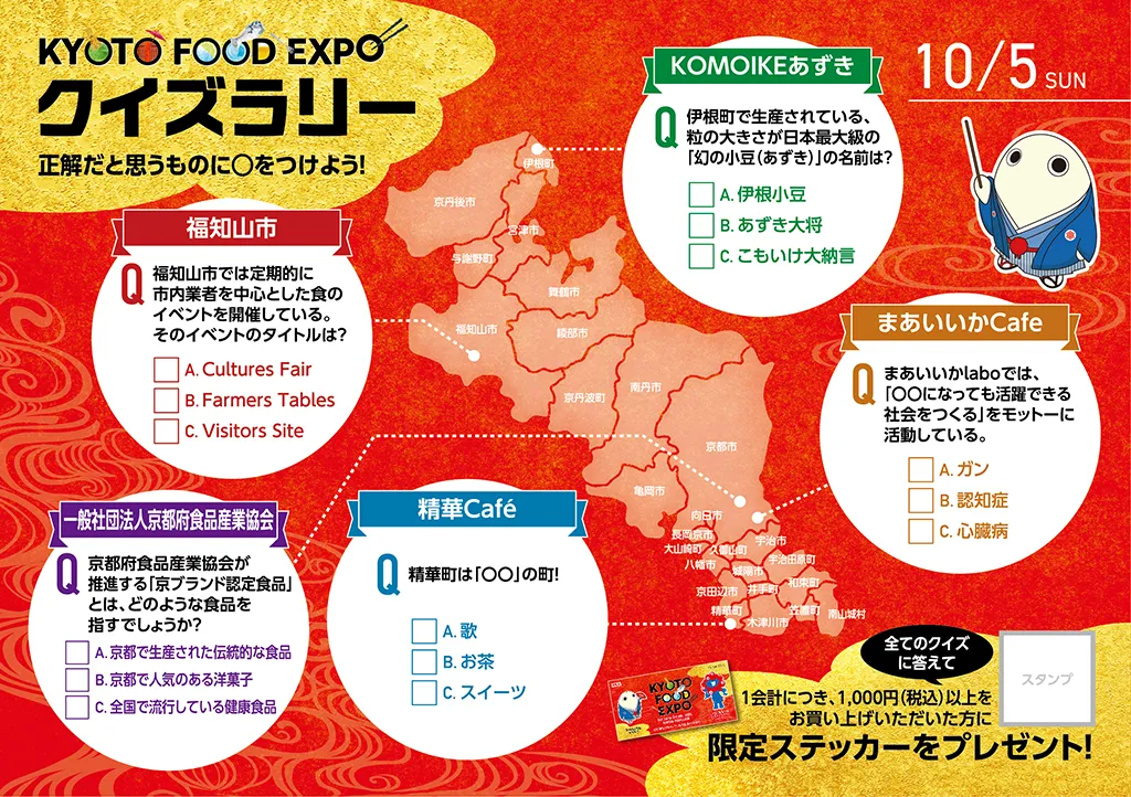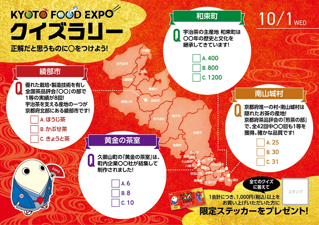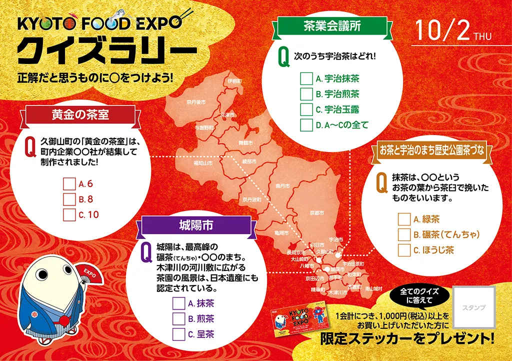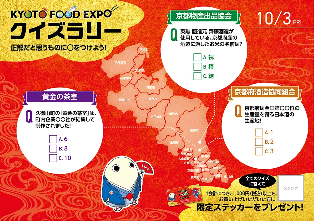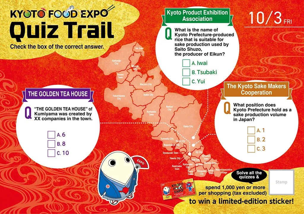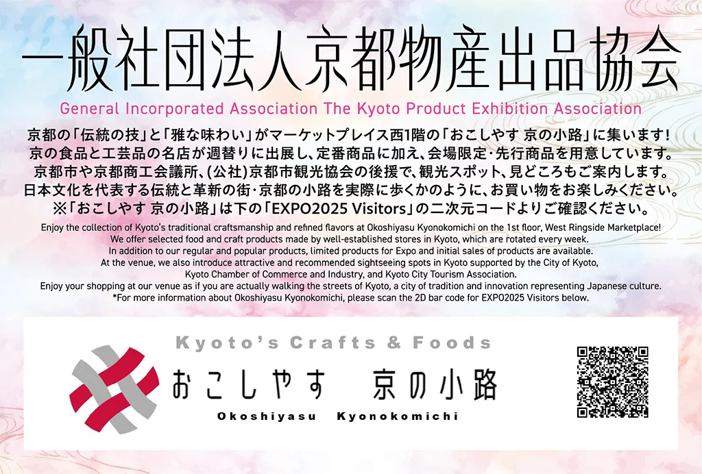 関西パビリオン多目的エリアにて、春は「MEET UP KYOTO きょうと大集合」をテーマに、物産イベントとステージイベントを、秋は「KYOTO FOOD EXPO」をテーマに、京都のお茶・お酒・食の魅力を伝えるイベントを実施しました。