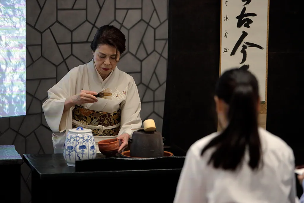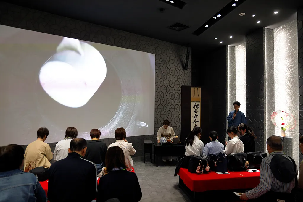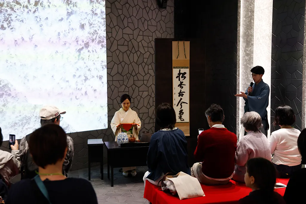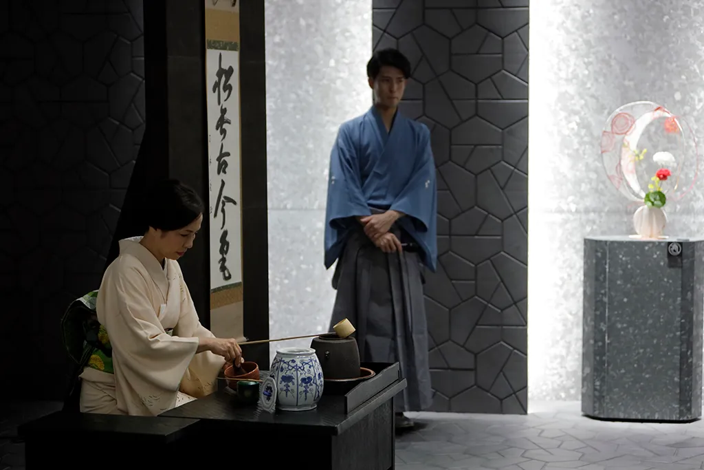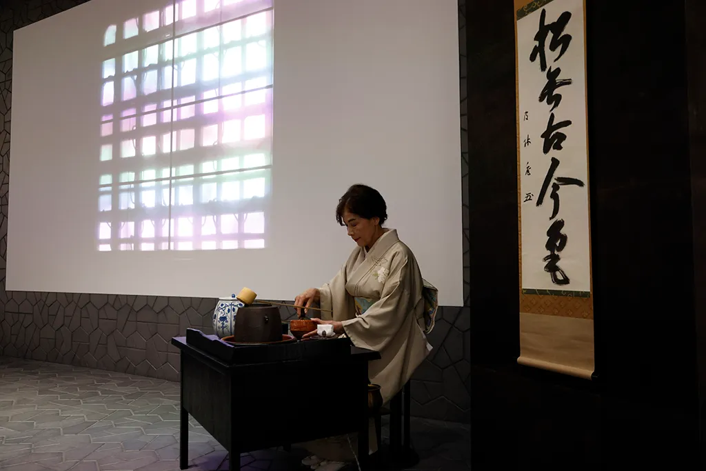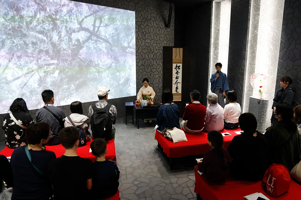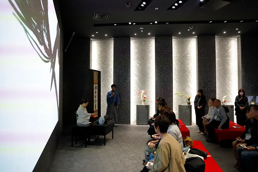 京都ゾーンのオープニングを飾るのは京の伝統文化、茶道と華道のおもてなしです。
