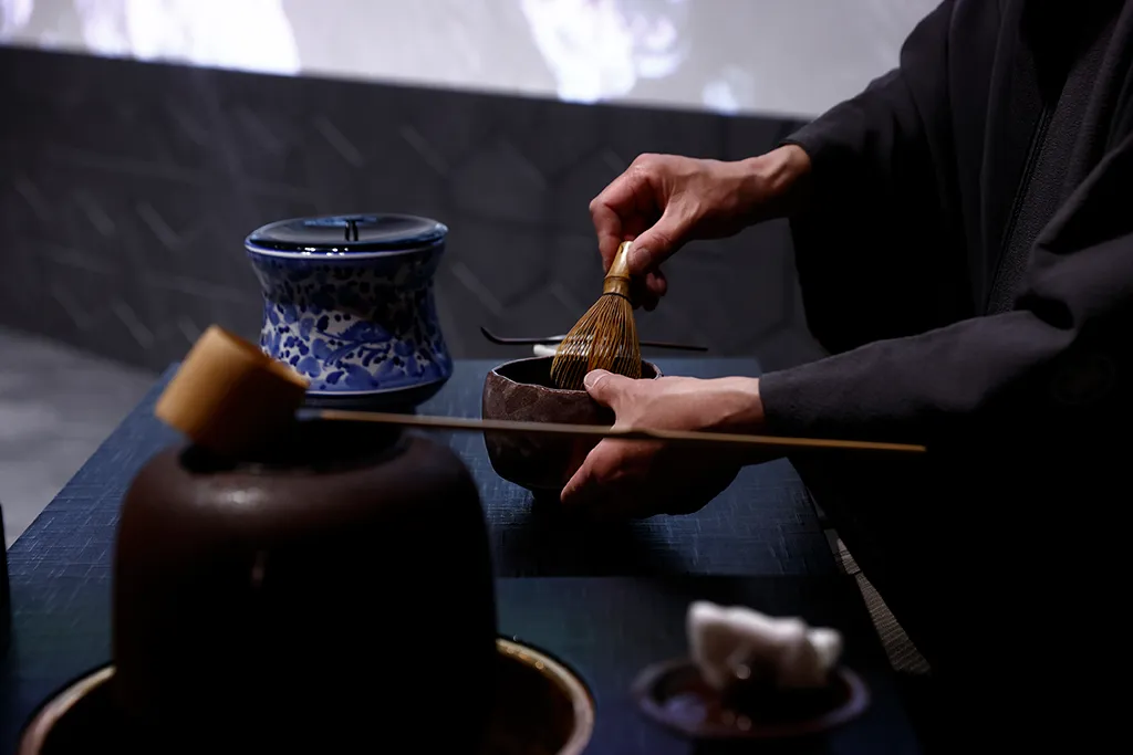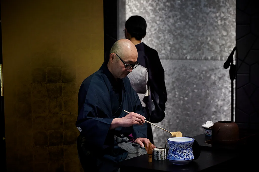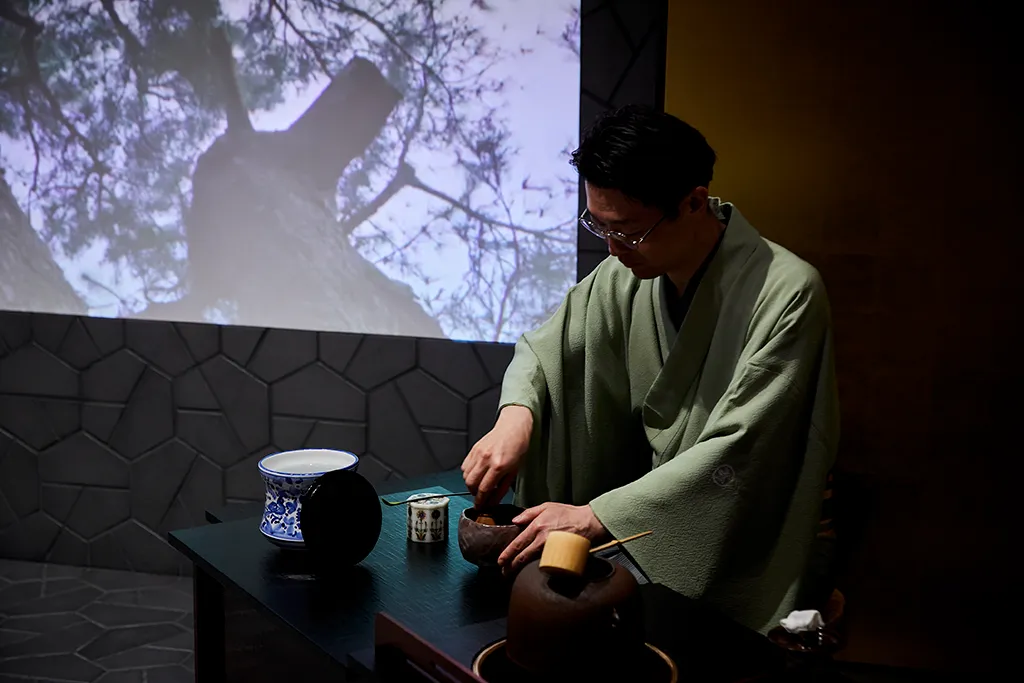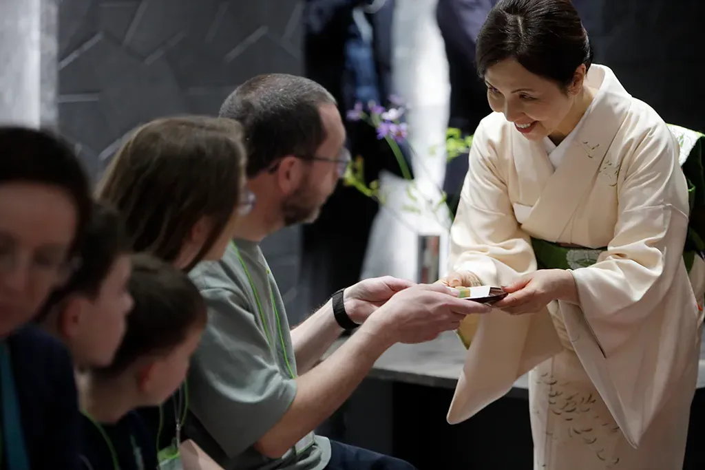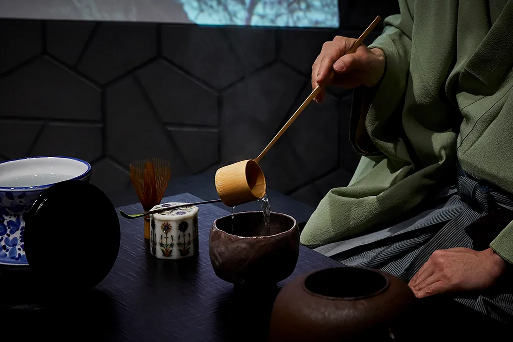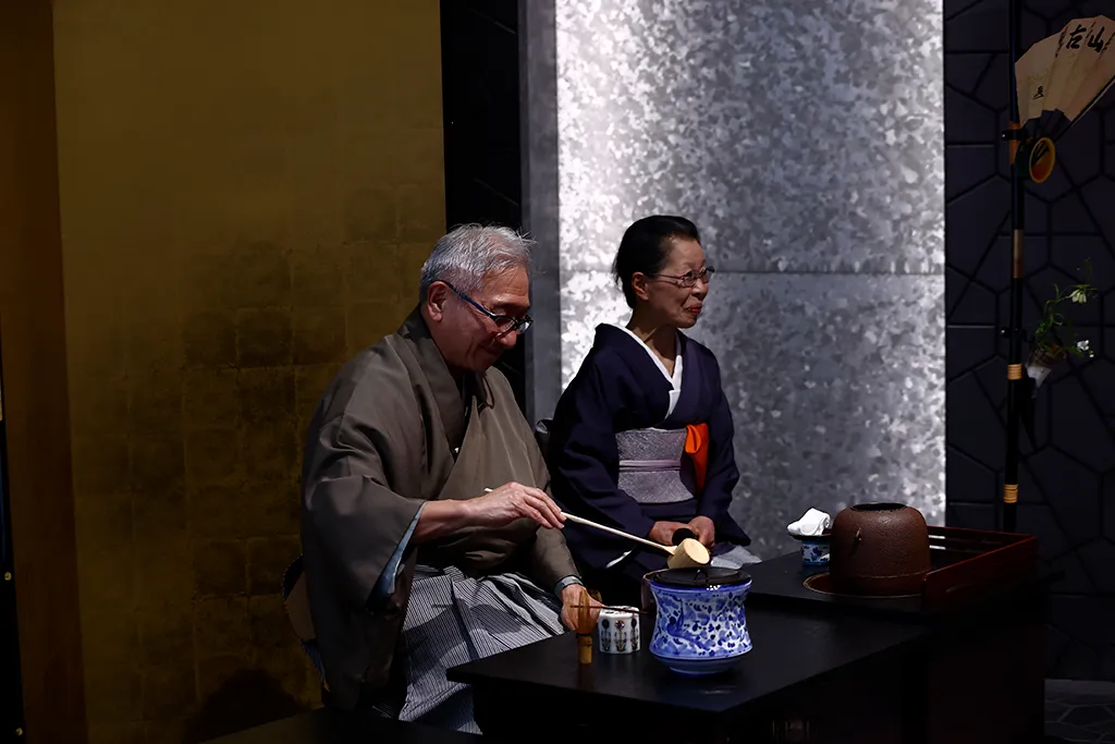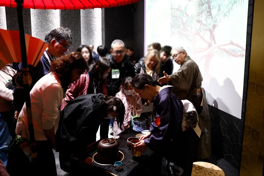 京都ゾーンのオープニングを飾るのは京の伝統文化、茶道と華道のおもてなしです。