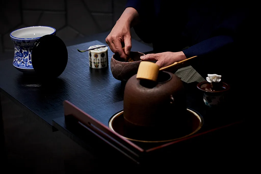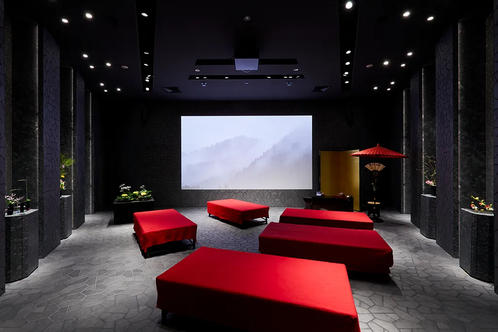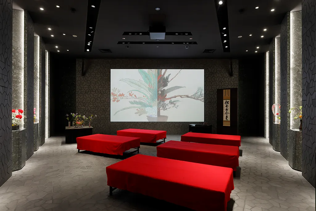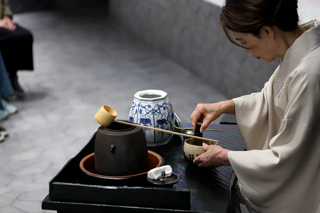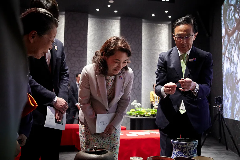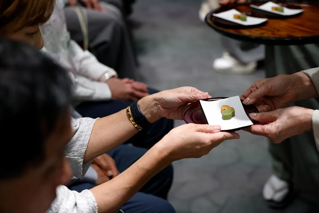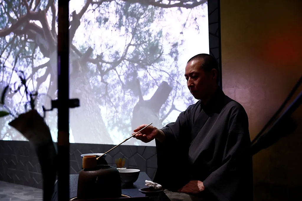 京都ゾーンのオープニングを飾るのは京の伝統文化、茶道と華道のおもてなしです。