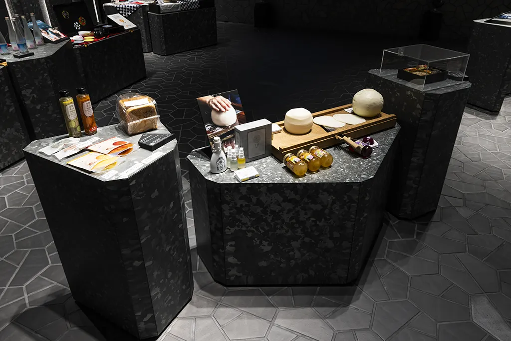 多彩な食品展示によって、「食」における京都の伝統と進取の気風を体感