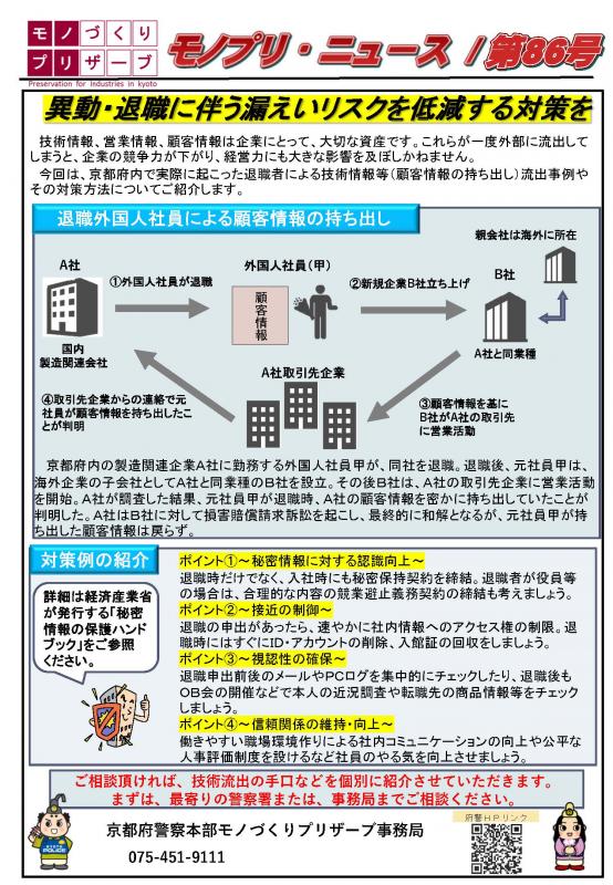 京都府警察本部モノづくり・プリザーブ事務局(外事課)電話 075-451-9111