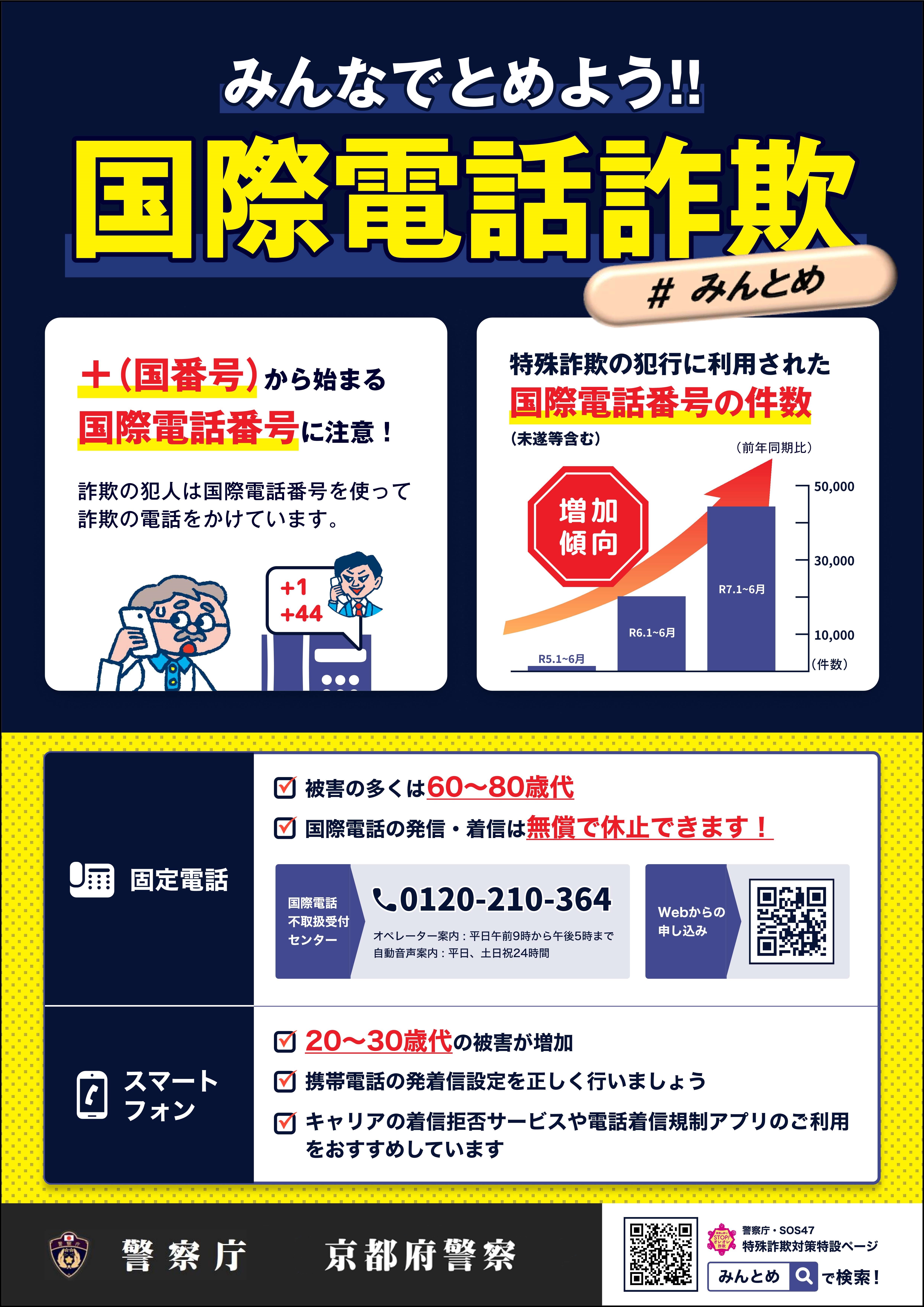 国際電話番号の対策をすることは特殊詐欺の被害防止に効果的なため、海外との通話が不要な方は対策をお願いいたします。
