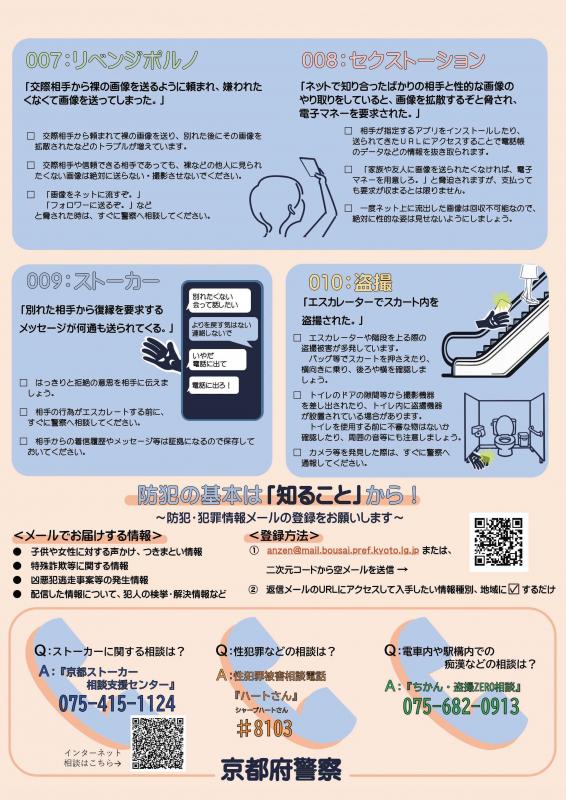 「セクストーション被害(※)」や誰もが被害者にも加害者にもなり得る「ストーカー」などの事例もわかりやすく紹介しています。