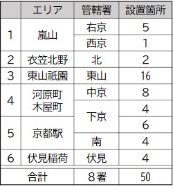京都府警察では、京都府民と京都を訪れる全ての人々の安全・安心を確保するため、京都市内の繁華街や駅、観光地周辺の50箇所に街頭防犯カメラを設置し、令和8年3月から運用しています。