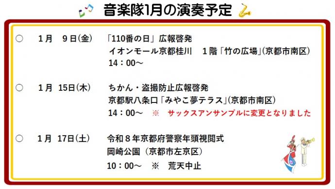 トップページ > ふれあい活動 > 京都府警察音楽隊&カラーガード隊 > 音楽隊コンサート・演奏活動
