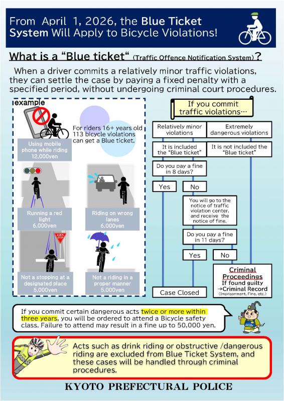 令和8年4月1日より自転車の交通違反に青切符が導入(From April 1, 2026, the Blue Ticket System Will Apply to Bicycle Violations!)