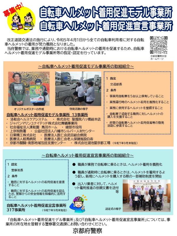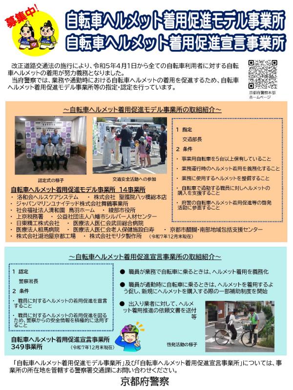 ・ 府警の自転車ヘルメット着用促進等の啓発活動に参画すること。