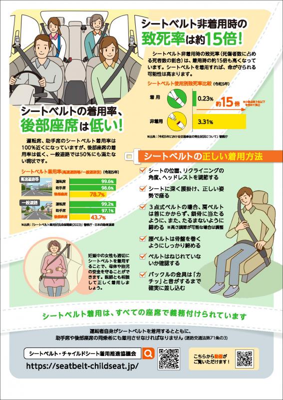 車に乗ったら、全席で必ず、シートベルト(こどもにはチャイルドシートを!)を着用しましょう!!