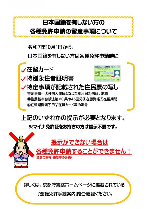 トップページ > 日本国籍を有しない方が免許申請時に必要な書類等が見直されました。