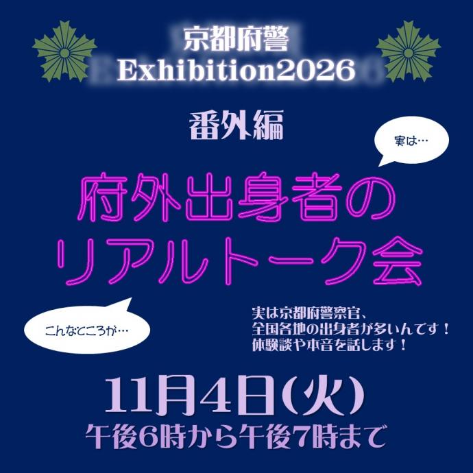 トップページ > 京都府警察の紹介 > 京都府警察採用情報 > 業務説明会・体験イベント > 京都府警Exhibition2026を開催します【番外編】(開催日令和7年11月4日(火))