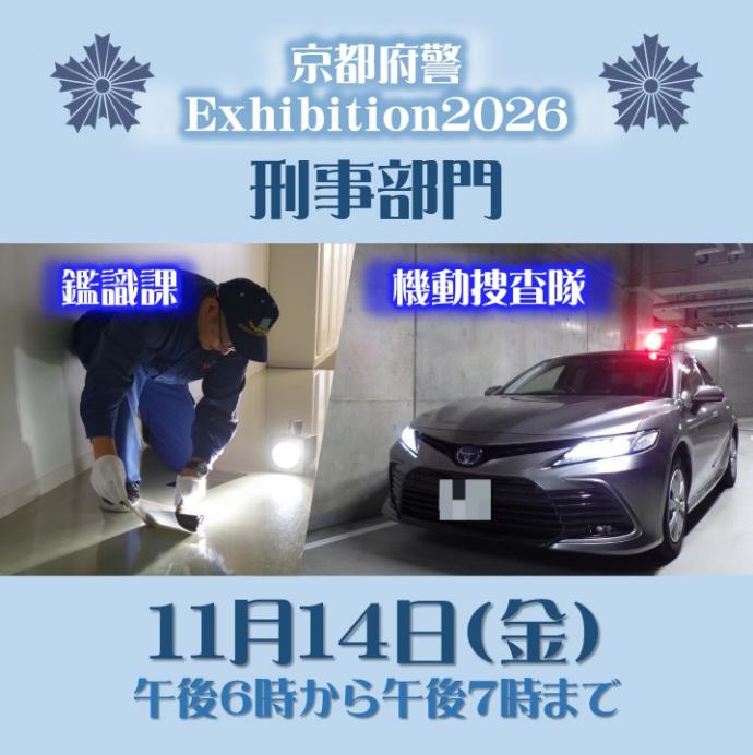 トップページ > 京都府警察の紹介 > 京都府警察採用情報 > 業務説明会・体験イベント > 京都府警Exhibition2026を開催します(第4弾開催日令和7年11月14日(金))