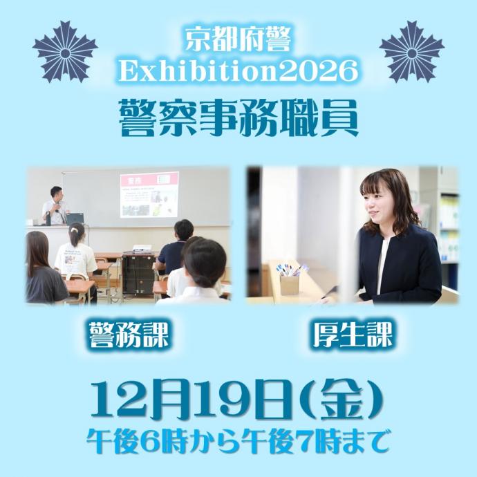 トップページ > 京都府警察の紹介 > 京都府警察採用情報 > 業務説明会・体験イベント > 京都府警Exhibition2026を開催します(第8弾開催日令和7年12月19日(金))
