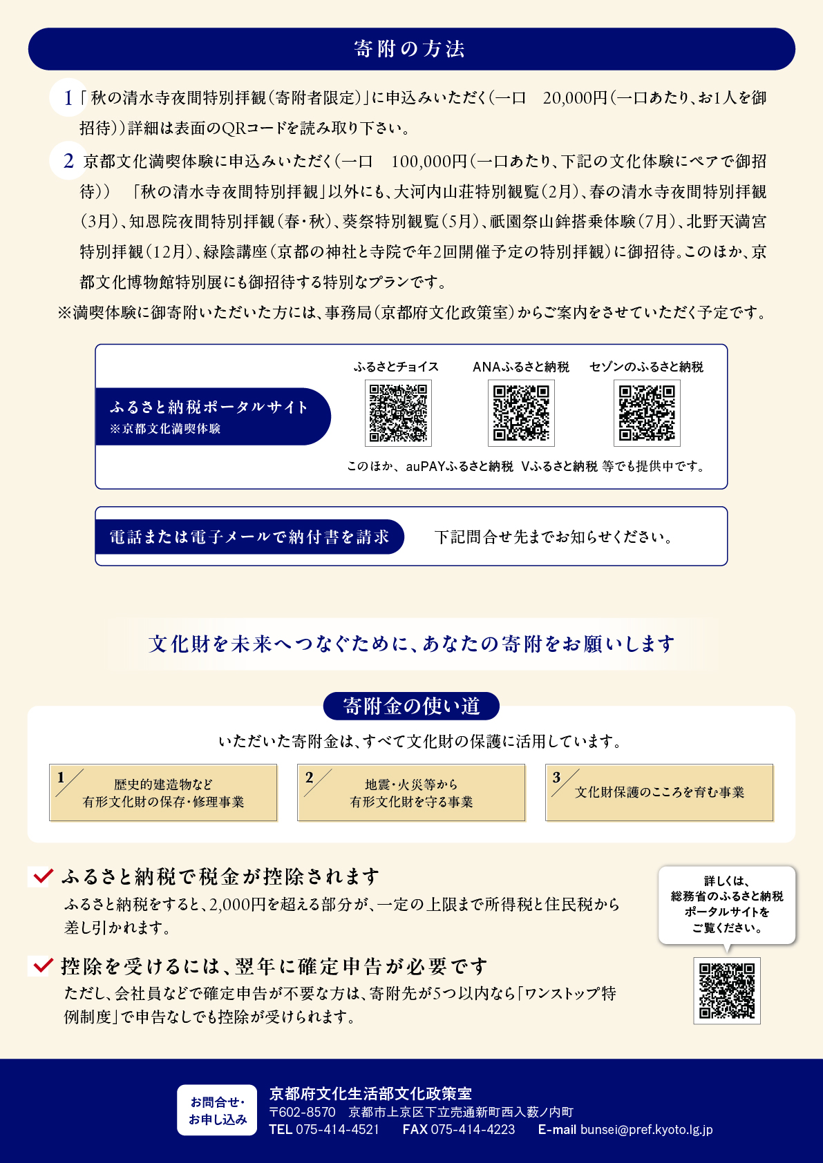 日程 秋:2025年11月21日金曜日、春:2026年3月末(未定) 時間 受付:18時~18時30分、拝観:18時30分~20時頃 寄附額 2万円