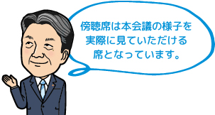 本会議※1のときには議員や理事者※2がここに集まり議論します。