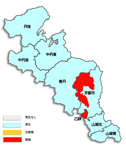感染性胃腸炎の京都府全体での定点当たり報告数は、12.32件と今週に入り急激に増加しています。全国的にも13.12件と流行をみせています。京都市内では右京区が定点当たり30.40件と警報レベルに達しているほか、乙訓でも26.75件と警報レベルとなっています。あらためて手洗い、うがい、吐瀉物や便の消毒管理などを徹底し感染拡大に注意してください。