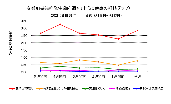 ■京都府での定点当りの報告数が多い上位5疾患の推移
