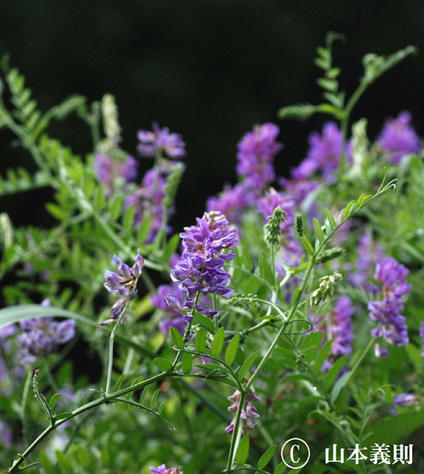 | 形態 | 山野の草原にはえる蔓性の多年草。葉は10~16個の小葉からなる偶数羽状複葉で、先端は分枝する巻きひげとなる。托葉は大きい。花は赤みがかった紫色で、密に一側に偏って総状花序に付く。花期は8~10月。 ◎参照 日本の野生植物 草本Ⅱ(平凡社)197、原色日本植物図鑑 草本編Ⅱ(保育社)108 |